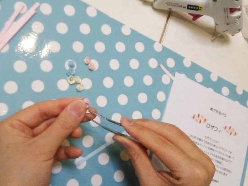 まずはバラを作ります!写真はピンセットで形を綺麗にしているところです♪