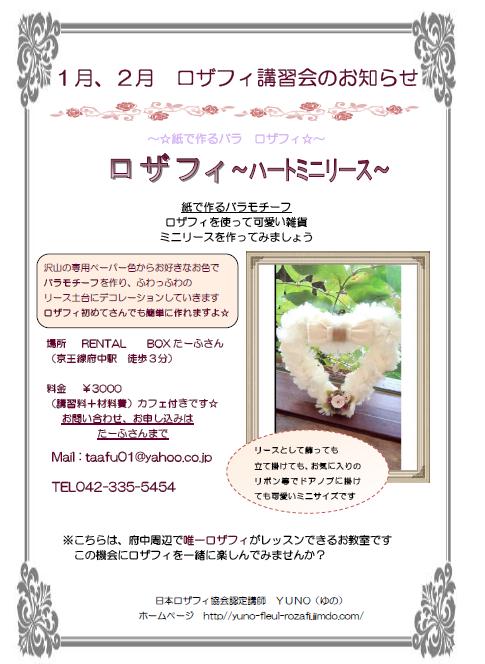1月2月 ロザフィ講習会 3,000円(材料費込み)