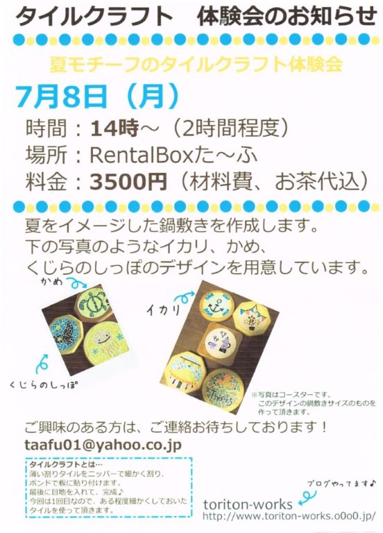 2013年7月8日にタイルクラフト教室が開催されました!